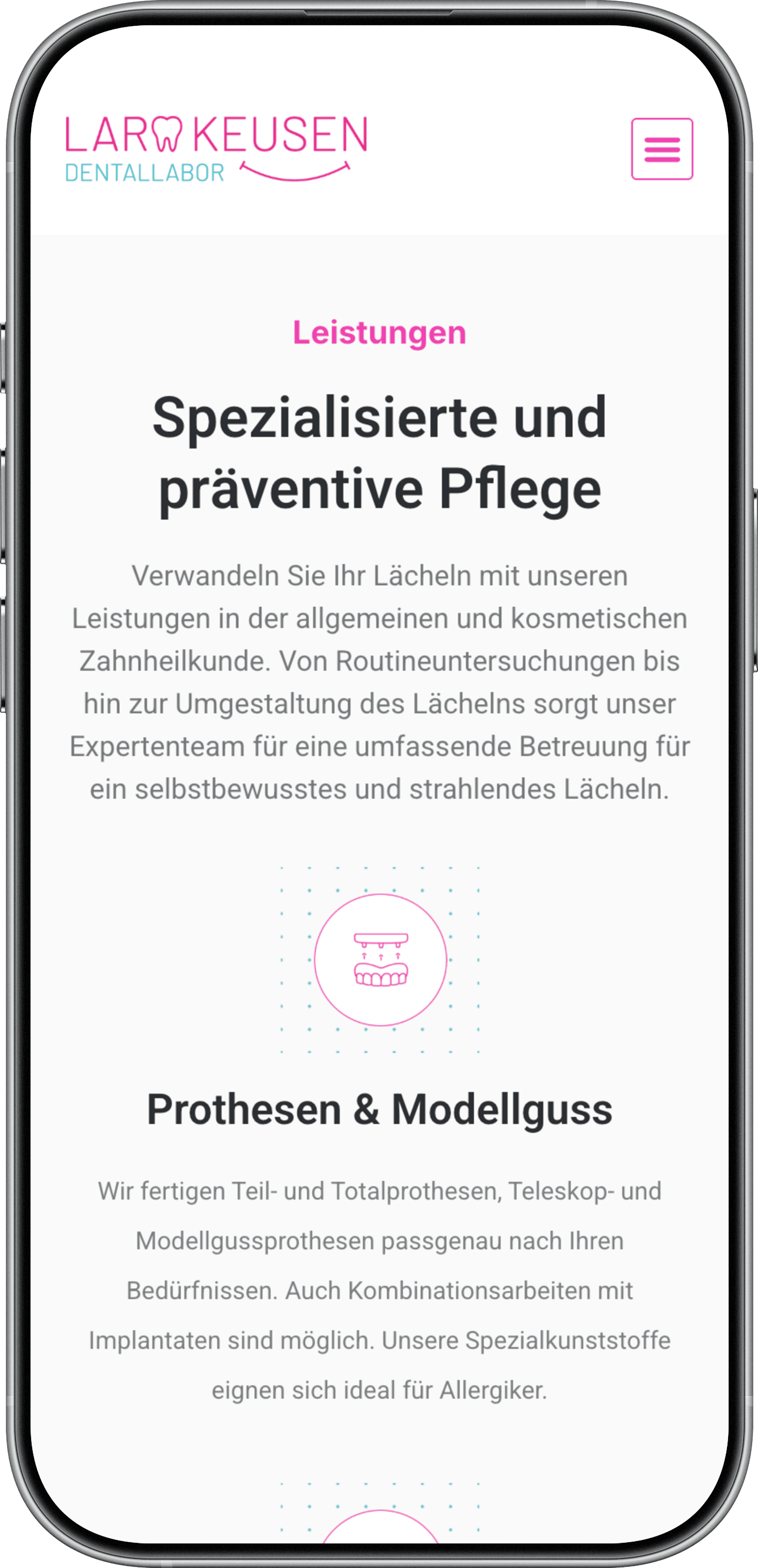 Über 70 % Ihrer Besucher kommen vom Smartphone. Ihre Website läuft auf jedem Gerät einwandfrei — schnell, übersichtlich und ohne lästiges Scrollen oder Zoomen.